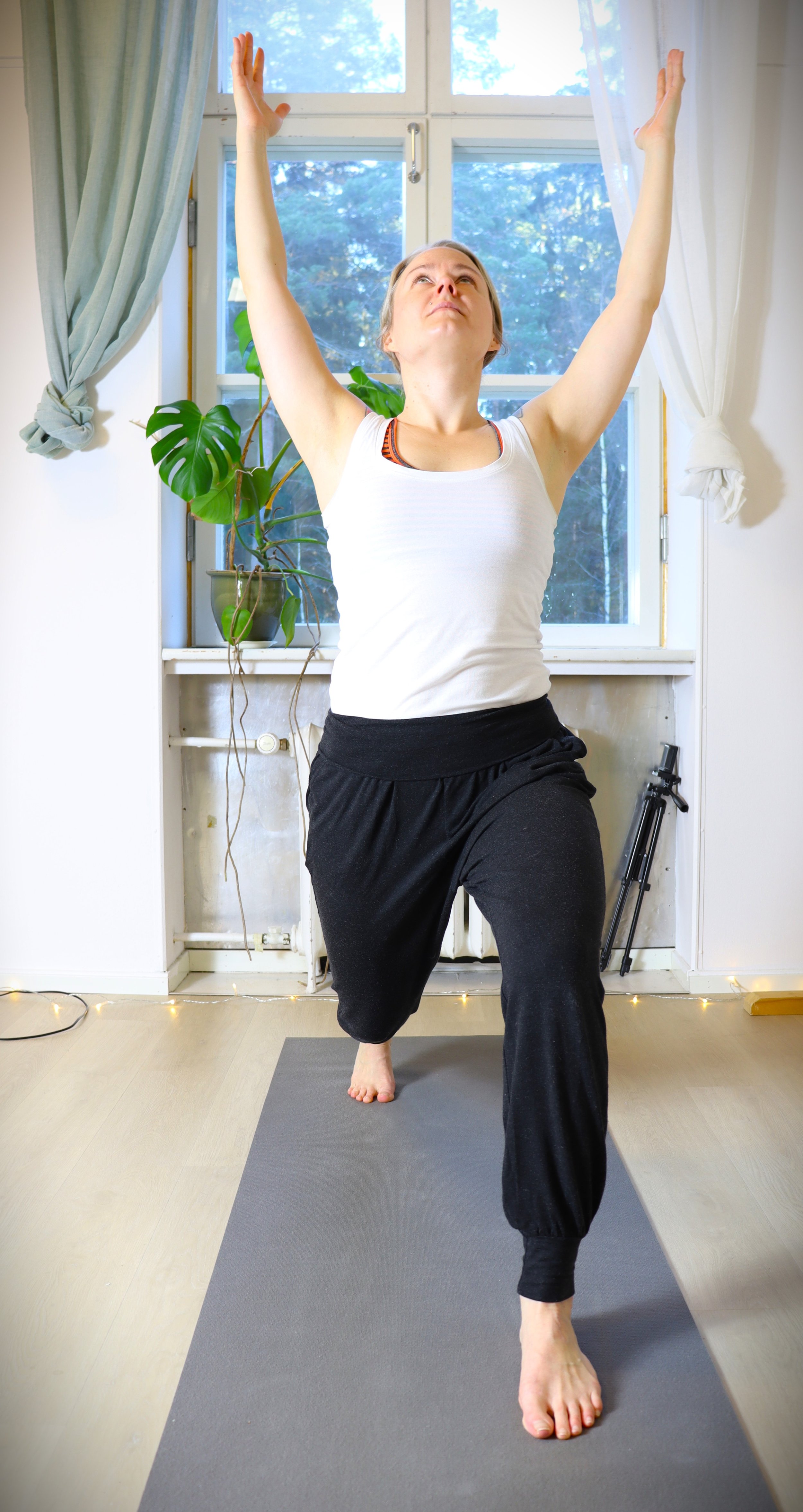 Tunnin alkupuolella liikutaan dynaamisemmin ja loppua kohden hidastamme tahtia palauttaviin ja rentouttaviin asanoihin.